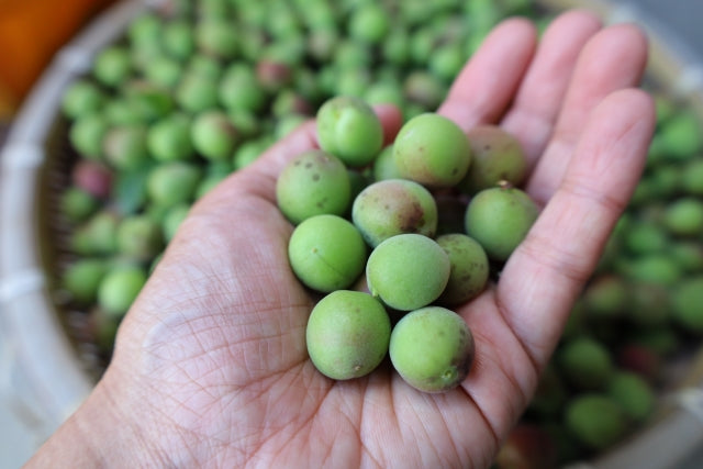 ‐お届けする梅は、栽培期間中、化学合成農薬、化学肥料不使用のため、黒星病やかいよう病(表面に黒褐色の斑点が出る)、虫食い等の実が混ざることがございます。そのままお使いいただき、お召し上がりいただいて問題ありませんが、気になるものは取り除いてお使いください